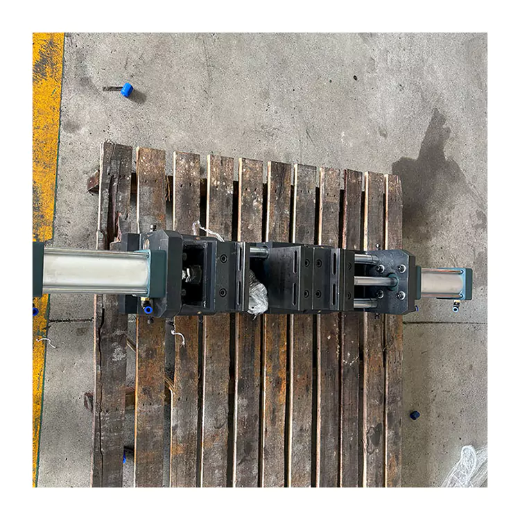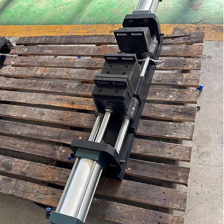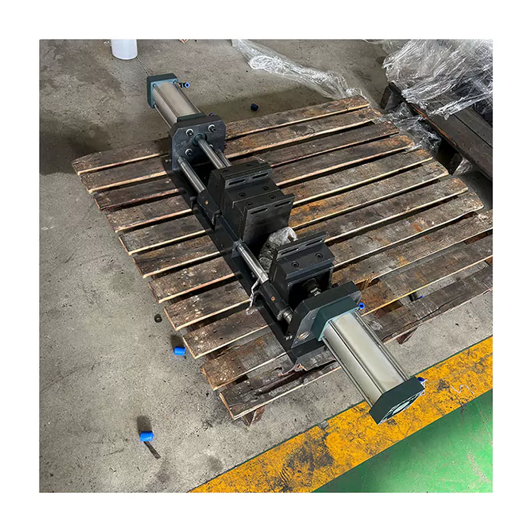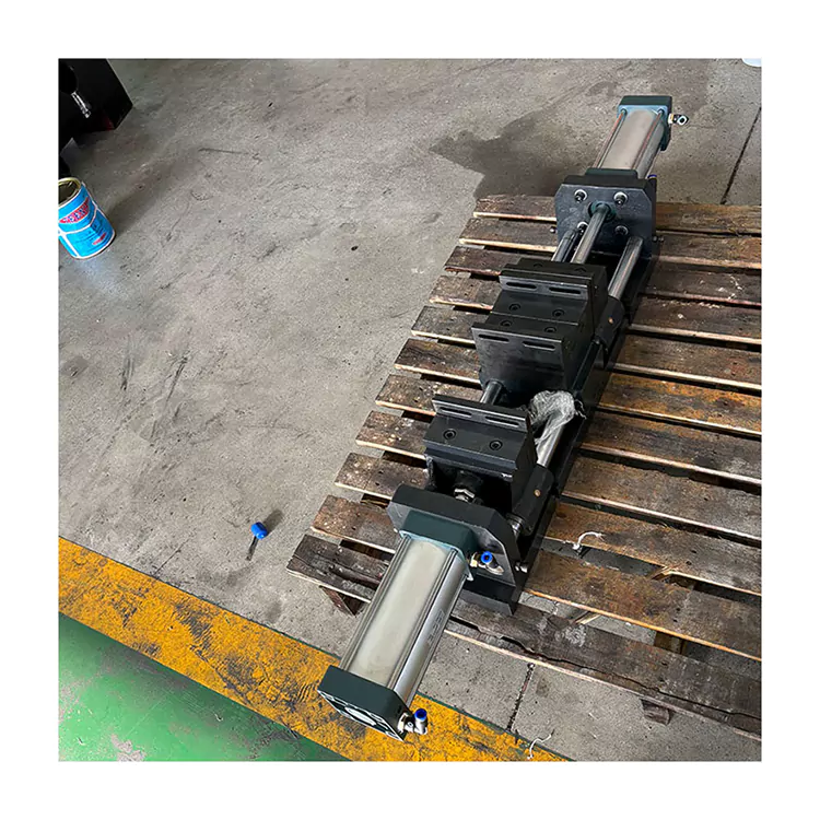 Solenoidový ventil ovládá tento vzduchový válec, nastavuje matici šroubové tyče pro ovládání otevřené velikosti svěráku a vytváří utahování a povolování obrobku